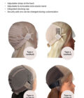 - Lace ear tabs with bendable strips – allows to achieve high ponytail (requires adhesives on the ear tabs). Bendable strip can be removed, lace ear tabs can be cut to any shape and size to mimic your own hairline.