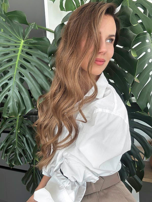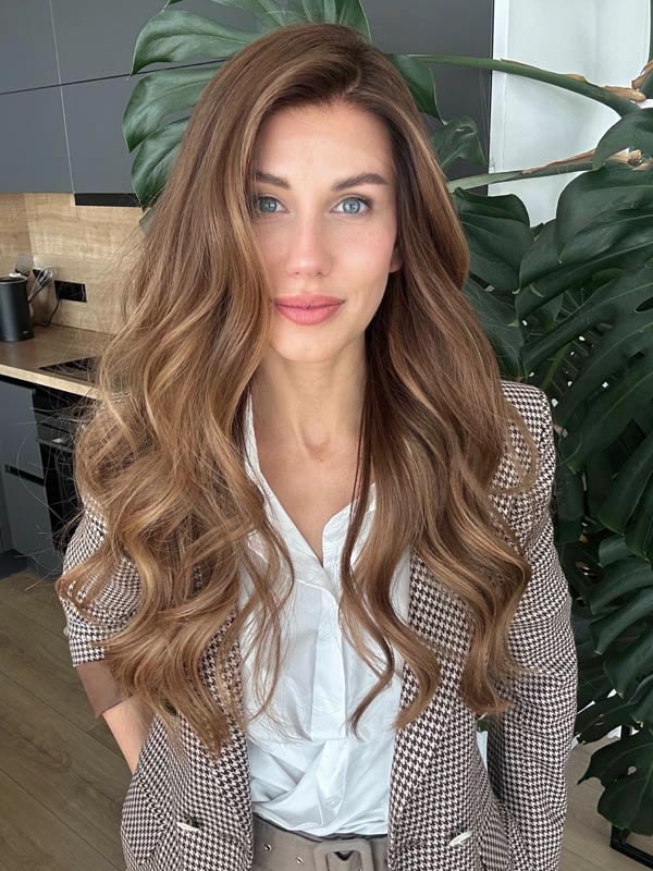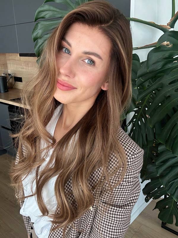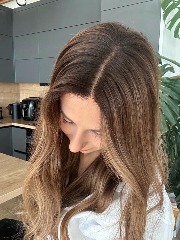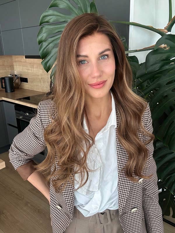 Wig in color “SOFIA VERGARA” (long) has the highest quality Brazilian single-drawn hair. If the glueless human hair wig doesn’t have thicker ends haircut or bob haircut, such hair gradually gets thinner towards the ends, replicating our natural hair look. Since this hair type is prone to waves, if you’re not planning to style it using heat tools and want to avoid any puffiness, follow these two simple steps: